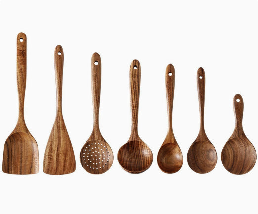 Spatula Kitchenware Suit Teak Head Shovel Salad Stir Soup Pasta Spoon Kitchen